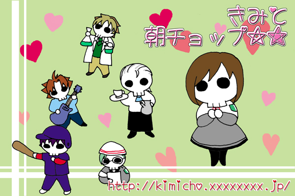 '09.06.28 Comic City(東京)でおまけに頒布したポストカードです。 シュールな骨のちびキャラが意外な人気でした★ ■使用ソフト:鉛筆w、Photoshop